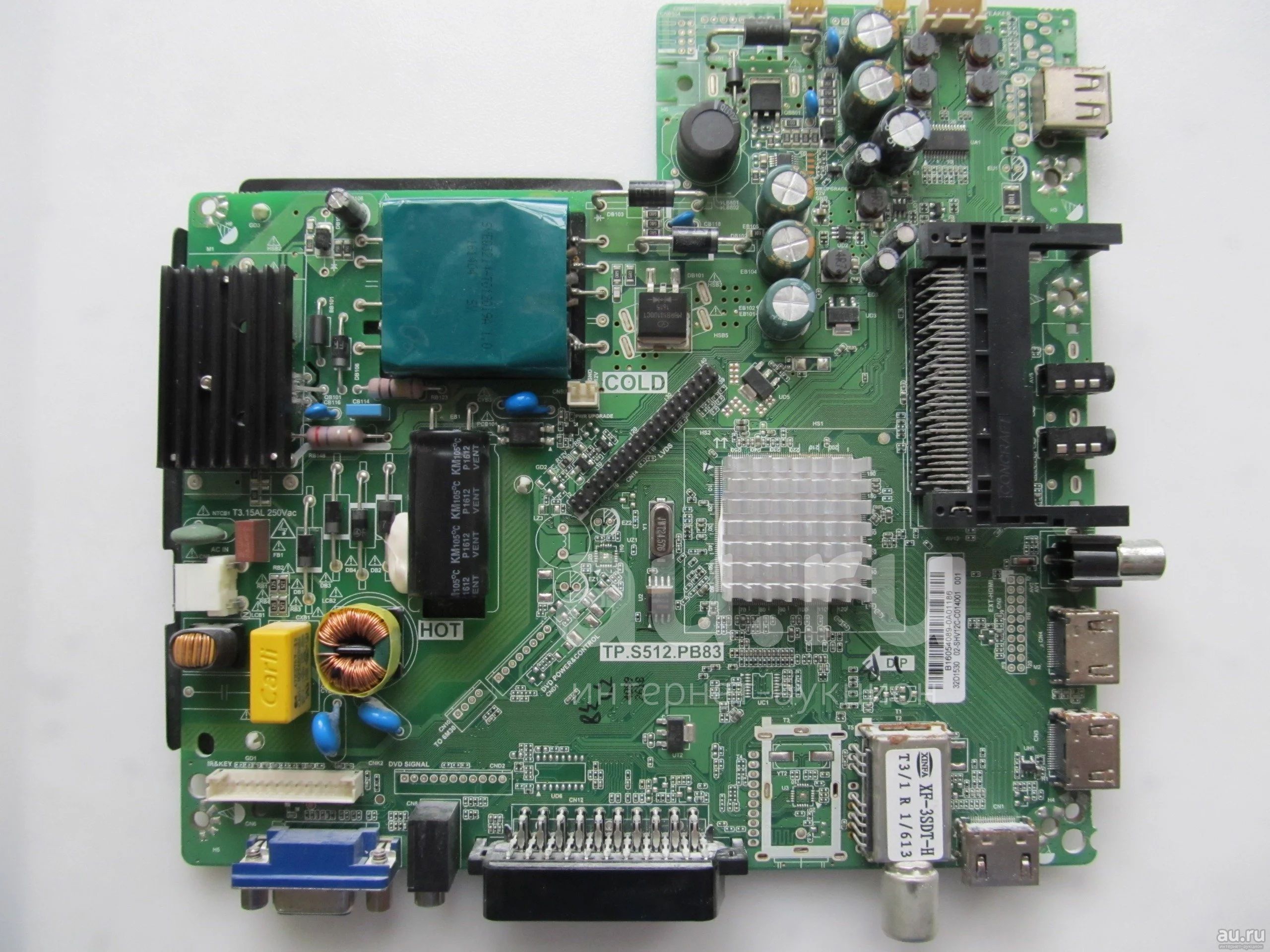 Моношасси TP.S512.PB83 демонтировано с ТВ Thomson T32D16DH-01W с неисправной панелью LVW320CSDX E19 V28.Тестировано-исправно: есть управление,подсветка,фрагменты изображения,звук.