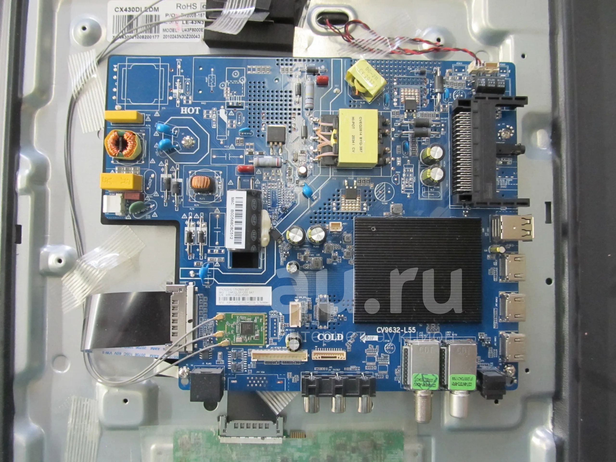MainCV9632-L55 демонтирован с TV Dexp U43F8000E/G с механически поврежденной панелью CX430DLEDM,тестирован,исправен.