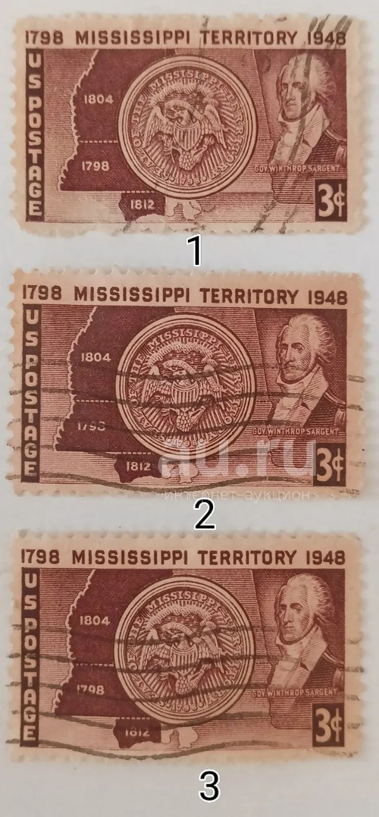 Марки_США, 3 цента 1948 год, 150 - летие территории Миссисипи, Гашёная, Редкая!;