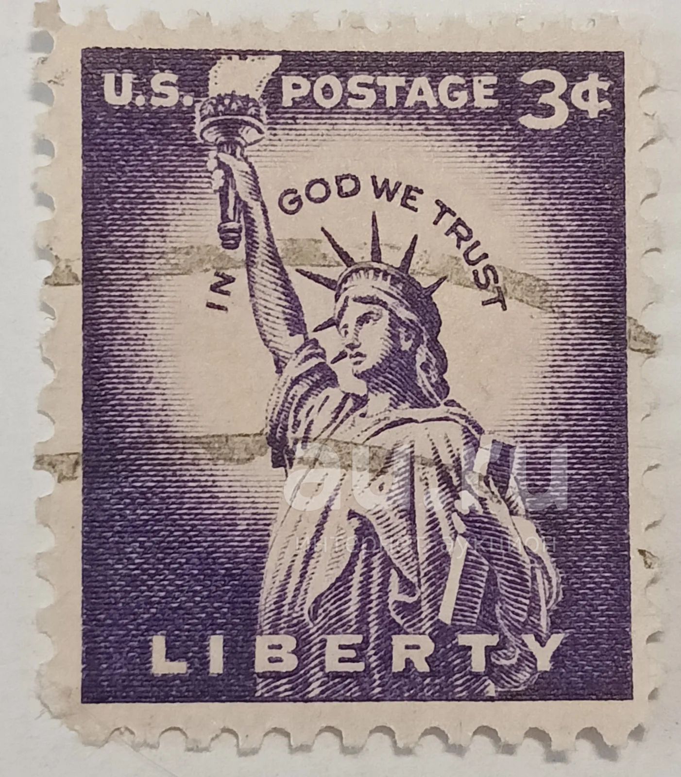 Марки_США, 3 цента 1954 год, Статуя Свободы (1875), остров Свободы, Нью-Йорк, Гашёная;