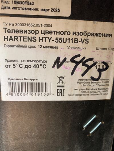 2 600руб.476 Hartens HTV-43F11B-VS новый разбитый