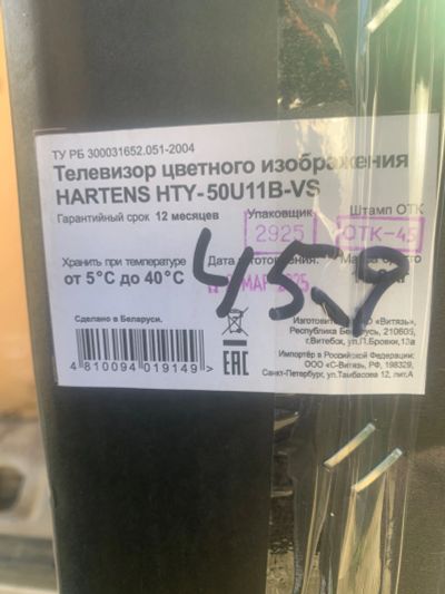 1 000руб.438 Hartens HTY-43F11B-VS новый разбитый