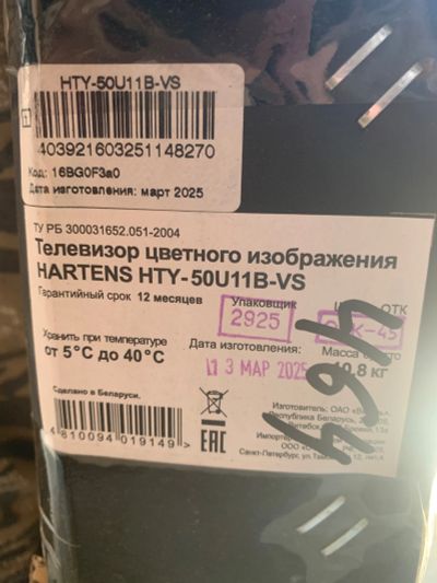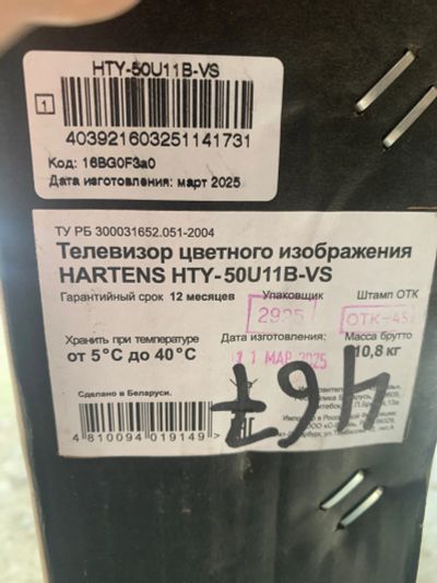1 000руб.479 Hartens HTY-50U11B-VS новый разбитый