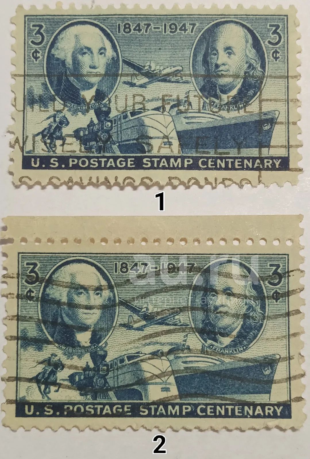 Марки_США, 3 цента 1947 г., Столетие почтовой марки США, Вашингтон и Франклин! R!