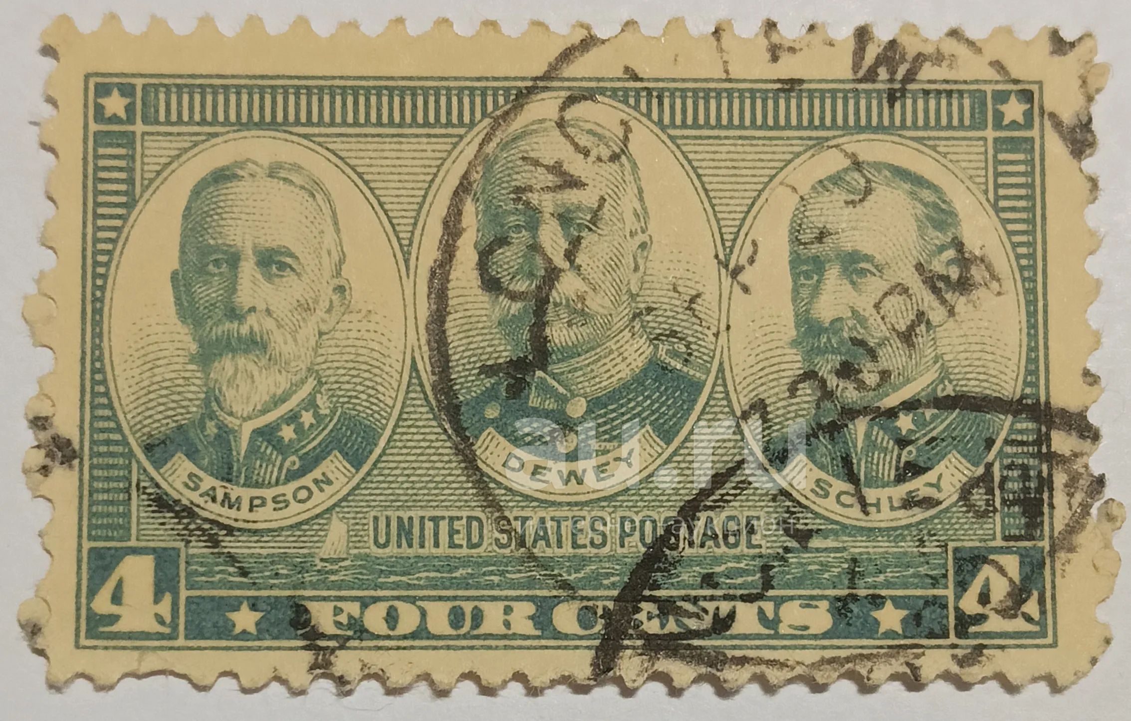 Марки_США, 4 цента 1937 г., Сэмпсон, Дьюи и Шли, Военно-морской флот, Редкая!