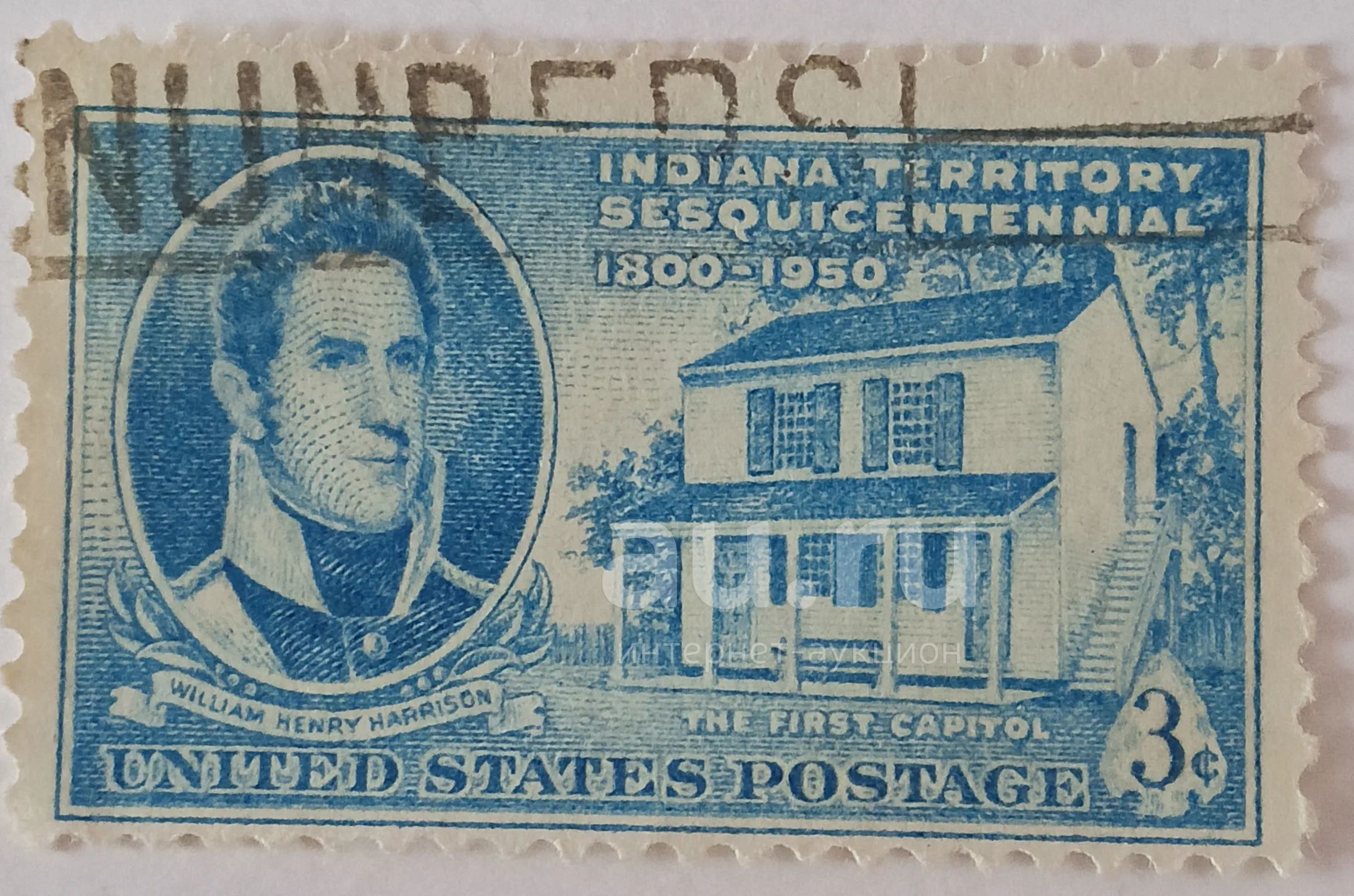 Марки_США, 3 цента 1950 г., Полуторавековая годовщина образования штата Индиана, Вильям Г. Харрисон
