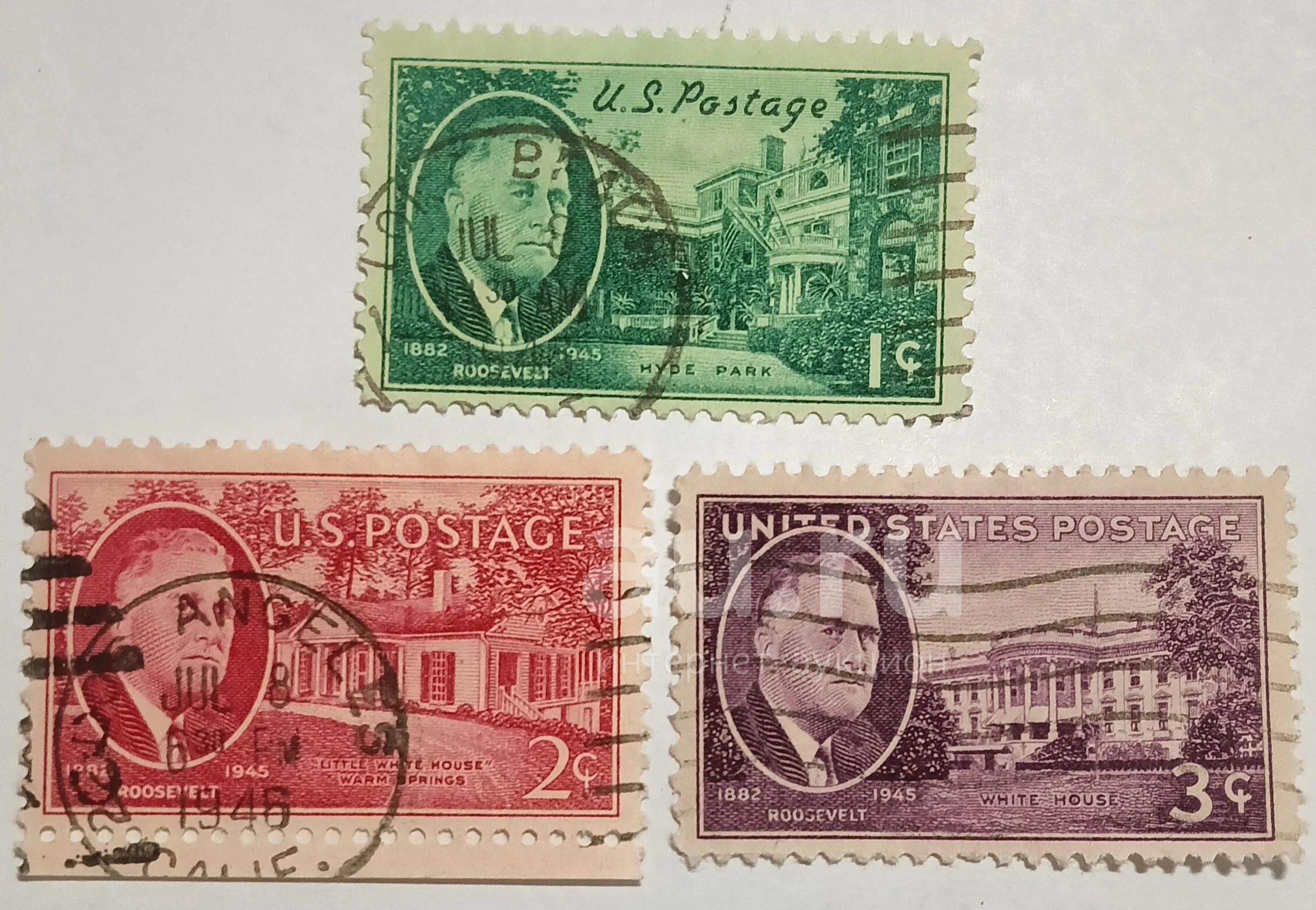 Марки_США, Набор из 3-х марок: 1,2, 3 цента 1945 г., Серия: Рузвельт; R!