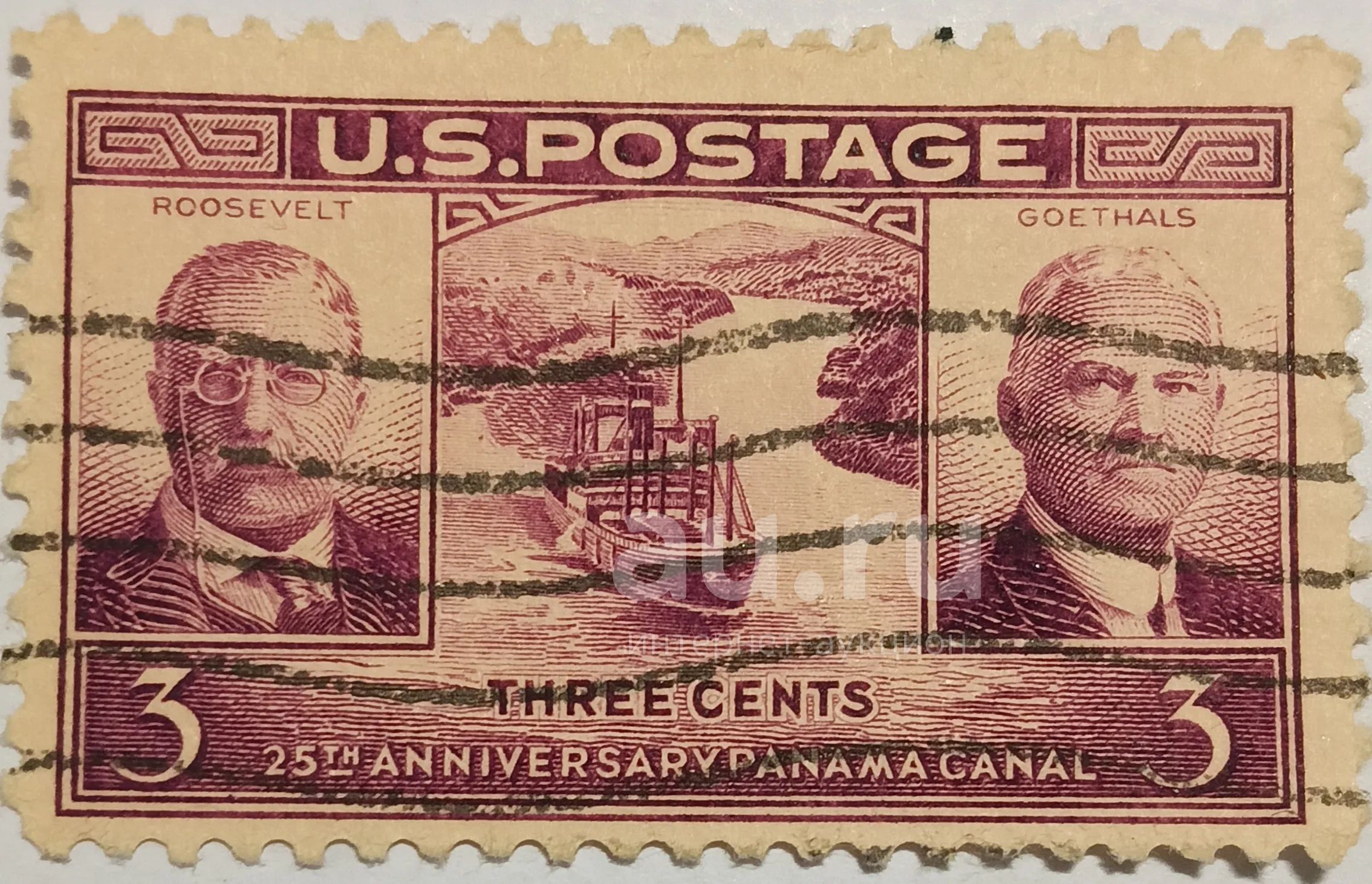 Марки_США, 3 цента 1939 г., 25-я годовщина открытия Панамского канала, Гашеная, Редкая!