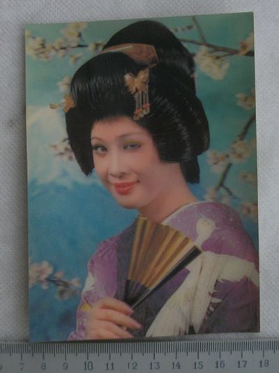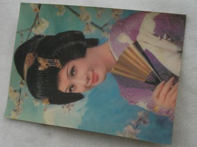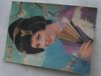 Открытка Стерео Стереооткрытка девушка Япония подмигивает веер 3D чистая