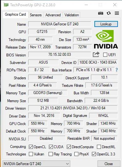 nVidia Asus GT 240