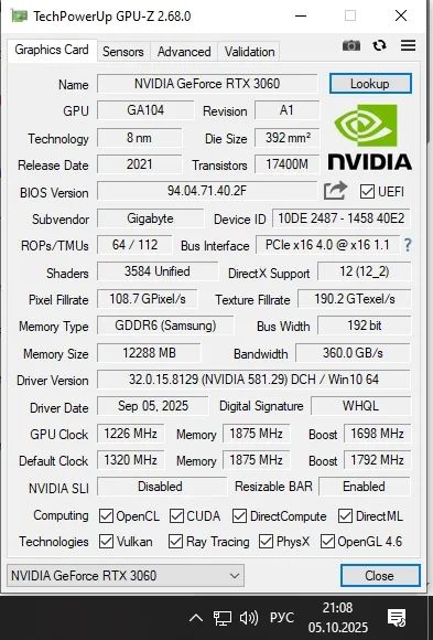 Видеокарта Gigabyte GeForce RTX 3060 Windforce OC (rev. 2.0)