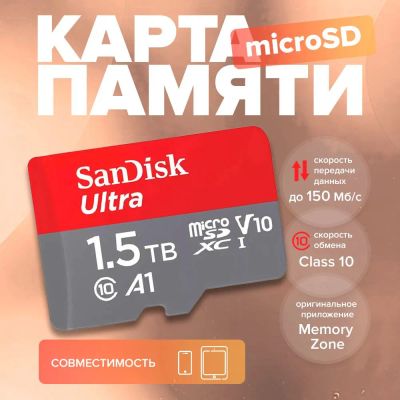 Карта памяти SanDisk 1.5TB Ultra UHS-I microSDXC 150MB/s, серо-красный
