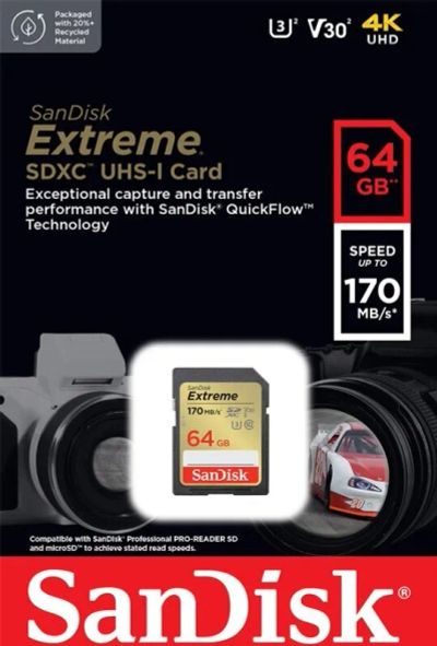 Карта памяти SanDisk 64GB Extreme SD UHS-I 4K