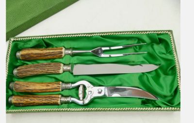 Набор для Барбекю «Охота» из 3-х предметов, Германия.Ручки:натуральный олений рог.